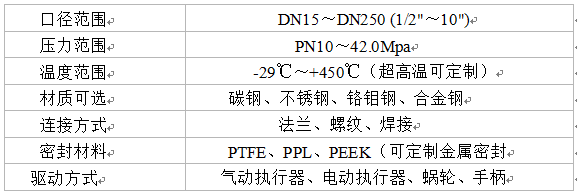 進口高壓球閥技術參數