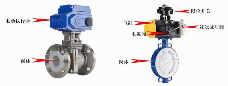 外觀區別:都是由執行器和閥體組成,電動閥限位開關在電裝內,氣動閥有限位開關、氣源過濾器、電磁閥。