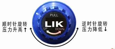 2、一邊看出口端壓力表,一邊慢慢轉動旋鈕來調整壓力(順時針旋轉壓力升高↑;逆時針旋轉壓力降低↓)。