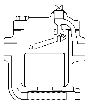 倒吊桶式疏水閥內部是一個倒吊桶為液位敏感件,吊桶開口向下,倒吊桶連接杠桿帶動閥心開閉閥門。倒吊桶式疏水閥能排空氣,不怕水擊,抗污性能好。過冷度小,漏汽率小于3%,最大背壓率為75%,連接件比較多,靈敏度不如自由浮球式疏水閥。因倒吊桶式疏水閥是靠蒸汽向上浮力關閉閥門,工作壓差小于0.1MPA時,不適合選用。